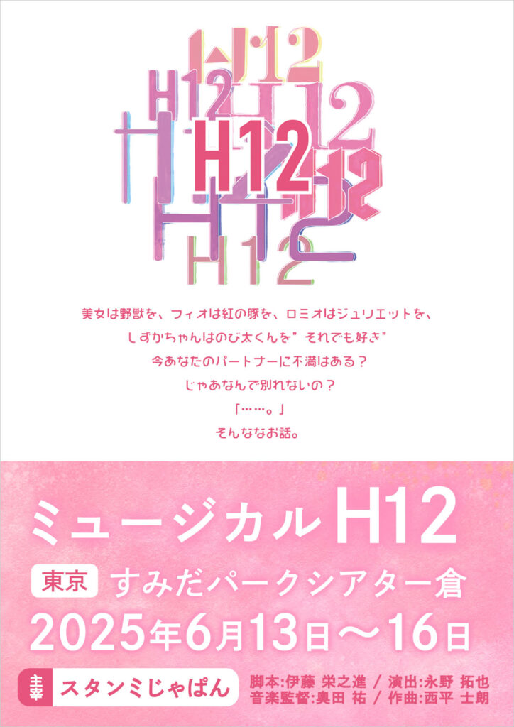 ミュージカル初挑戦のスタンミじゃぱんと、オーディションで選ばれた新たな才能を迎えて送る、進化を遂げたミュージカル「H12」の世界をご期待ください。